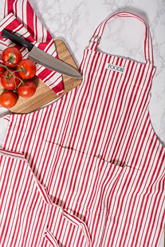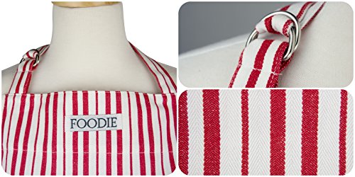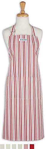 DII Cotton Adjustable Gourmet Stripe Chef Apron with Pocket and Extra Long Ties, 36 xd 26.5", Men & Women Kitchen Apron for Cooking, Baking, Crafting, Gardening, BBQ-Tomato Red