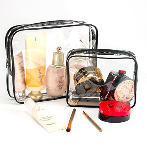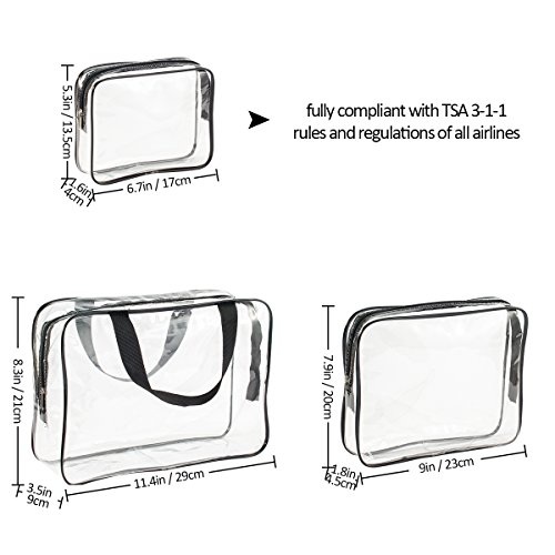Include 2 Pieces TSA approved travel toilertry bags: the size of small clear toiletry bag is 7.08*5.51*1.57inch which is fully compliant with TSA 3-1-1 rules and regulations of all airlines. It can pass through domestic and international security.