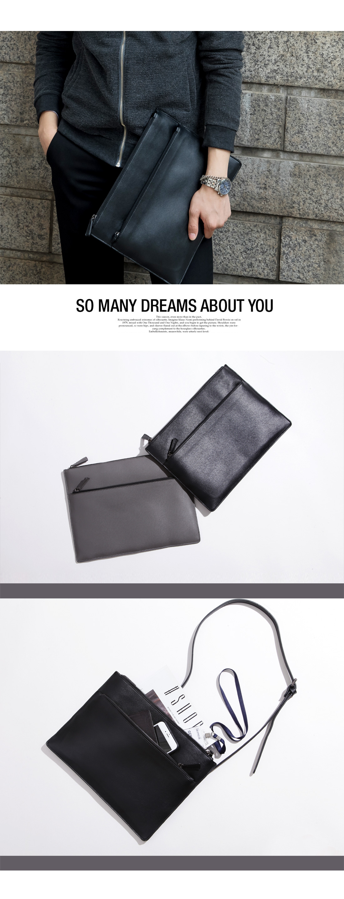 -모던 레더 클러치&크로스백입니다.
