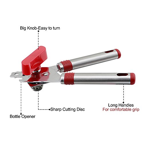 Maison-Market Can Opener Food Grade Stainless Steel Manual Tin Opener Kitchen Tools Gadgets Bottle Opener Easy to Use No Slip Handle