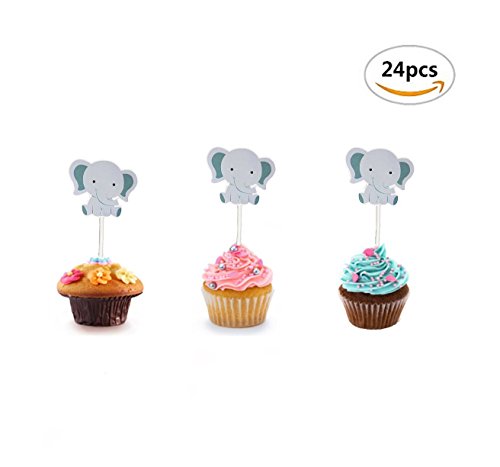 Maydolbone 24Pack Elephant Baby Cupcake Toppers - for jungle themed birthday or baby shower Food Picks Decor And Cupcake Party Pick