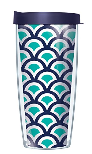 Navy & Teal Preppy Scallop Traveler 16 Oz Tumbler Cup with Navy Lid