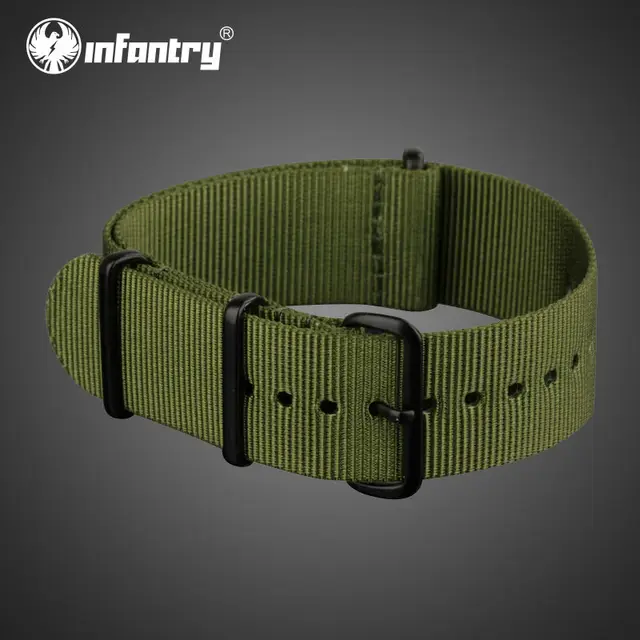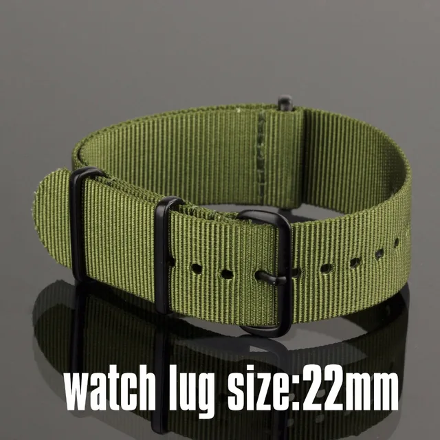보병 22 미리메터 시계 스트랩 녹색 나일론 스트랩 블랙 버클 새로운 강한 줄 팔찌 군사 시계 액세서리