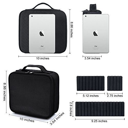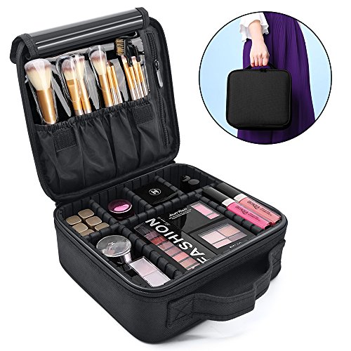 Makeup Train Case,Yolife Portable Cosmetic Bag Organizer with Brush Set Holder,Storage Case Travel Bag with Adjustable Dividers(10inch) (black)