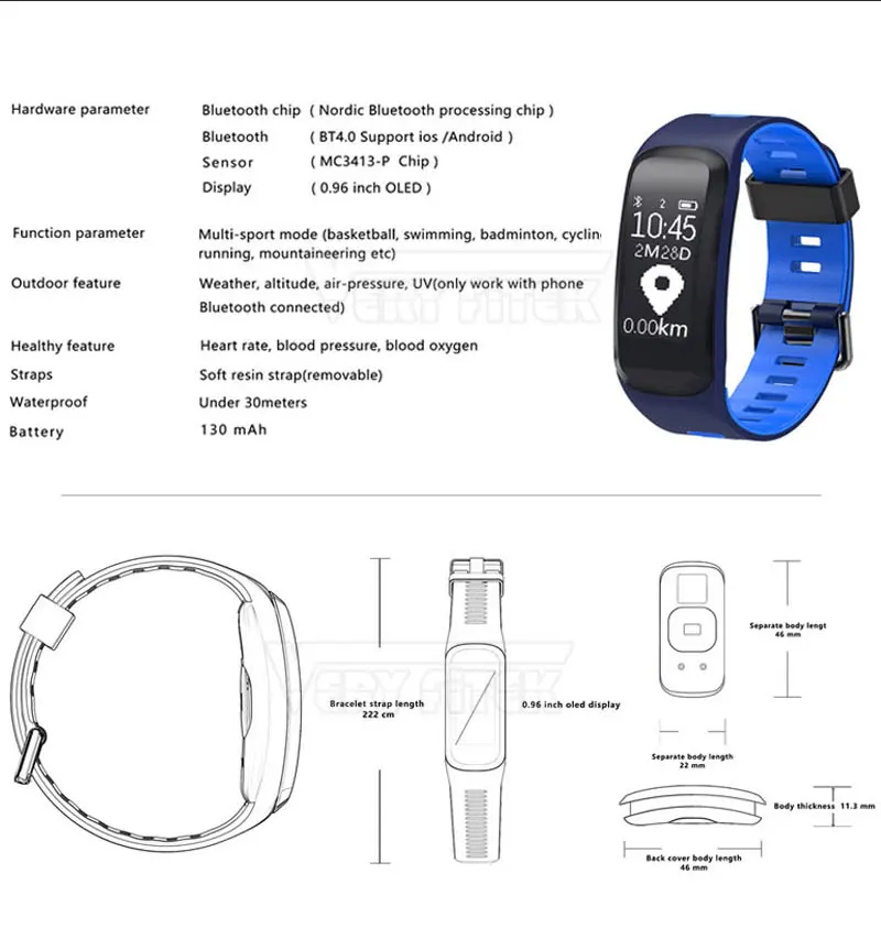 Function:Altitude Meter,Message Reminder,Chronograph,Passometer,Alarm Clock,Activity Tracker,Blood Oxygen,Fitness Tracker,Blood Pressure,Call Reminder,Remote Control,Sleep Tracker,Heart Rate Tracker,Push Message,Social Media Notifications