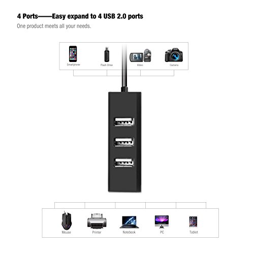 USB Hub, Vogek World's Smallest 4-Port USB 2.0 Hub, 2.5 x 0.8 x 0.7 Inch