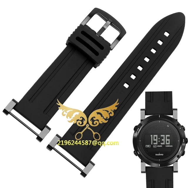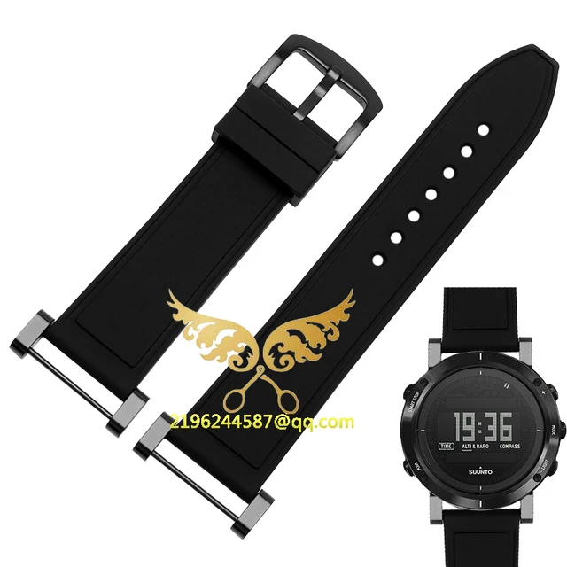 | [해외]무료 배송 순토 코어 시계 스트랩 24 미리메터 블랙 부드러운 고무 실리콘 + 스테인레스 버클 + pvd 어댑터 + screwbars |