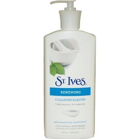 -. Binding : Health and Beauty -. Brand : St. Ives -. EAN : 0077043612330 -. Feature : St. Ives Collagen elastin moisturizer has moisture-rich formula that is proven to leave your skin visibly healthy and younger looking. / St. Ives lotions are tested in Switzerland and provide 200% more moisture immediately for soft, smooth skin / Pure Swiss Glacial Water Nature's pure form of moisture. / Swiss Botanicals Skin nourishing Collagen & Elastin Proteins found in young, healthy skin. -. Label : Unknown -. Manufacturer : Unknown -. MPN : U5-AB10-628C -. PackageQuantity : 1 -. PartNumber : U5-AB10-628C -. ProductGroup : Beauty -. ProductTypeName : BEAUTY -. Publisher : Unknown -. Size : 12 Ounces -. Studio : Unknown -. Title : St. Ives Advanced Body Moisturizer, Renewing Collagen Elastin 12 Oz -. UPC : 077043612330