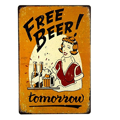 T-ray Free Beer Tomorrow Bar Pub Garage Man Cave Rustic Metal Tin Sign Yellow Vintage