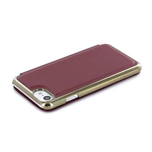 Feature : Official Ted Baker slim folio case for the Apple iPhone 7 / Crafted in super-soft leather effect with an electroplated back shell / Finished in the season's signature oxblood and offset against Ted's favorite rose gold / Flip-back magnetic folio cover hides a secret internal mirror / One year exchange warranty