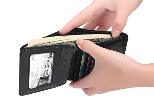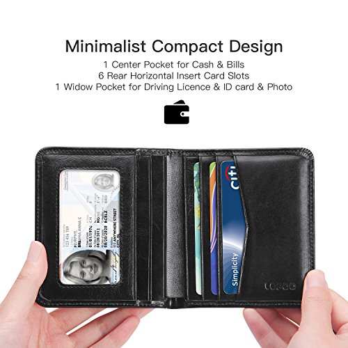 -. Title : LOPOO Bifold Wallet [ 8 Pocket ] Genuine Leather Wallet Window Wallet RFID Blocking