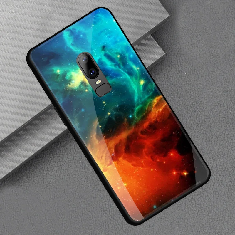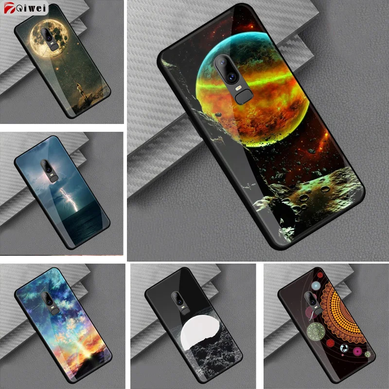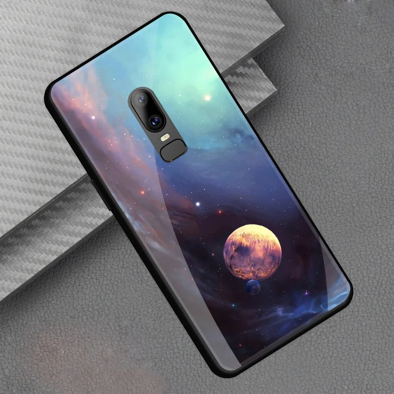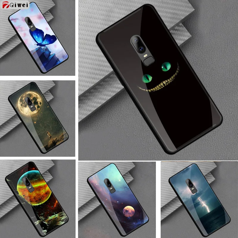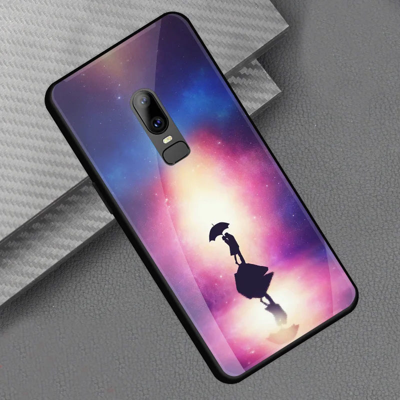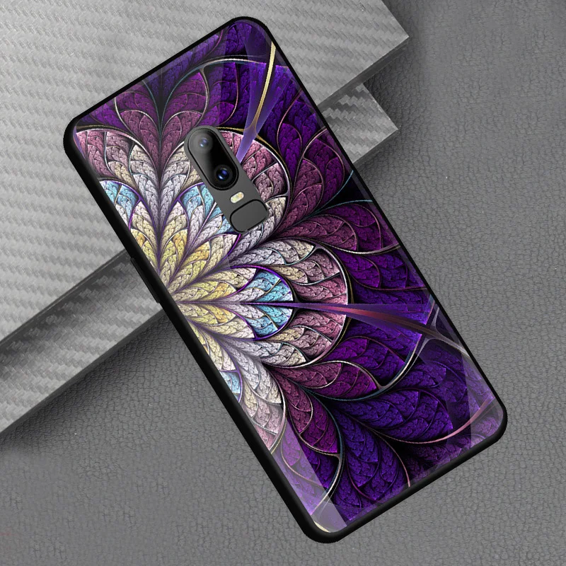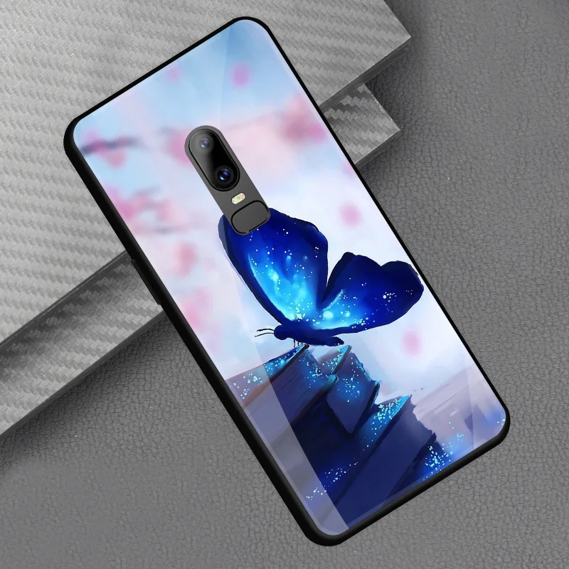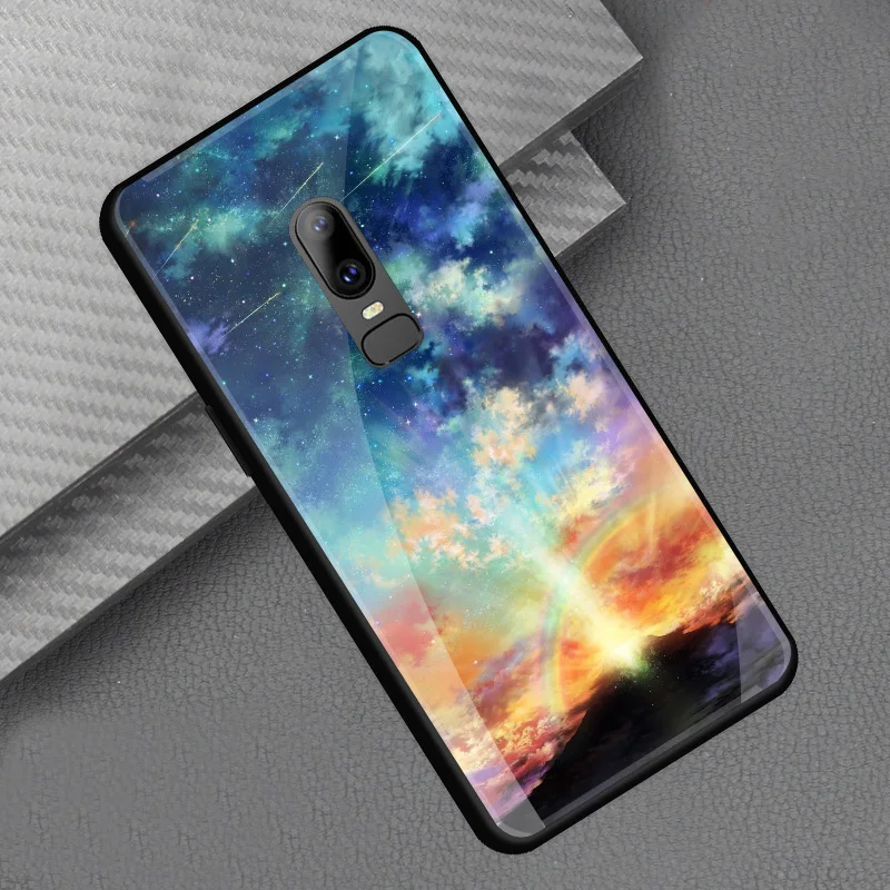Style::Tempered glass print back cover soft tpu frame bumper for oneplus 6