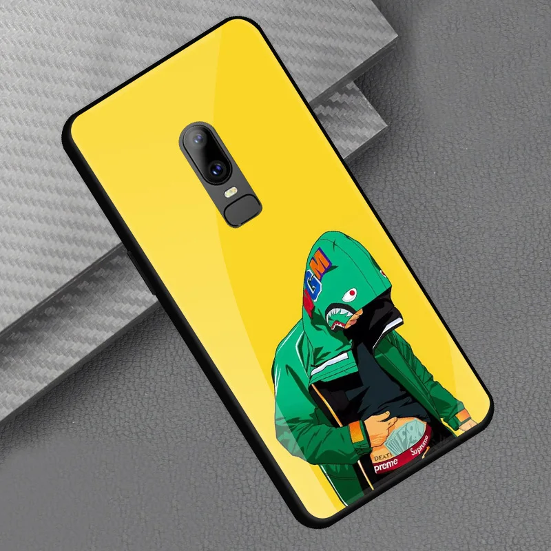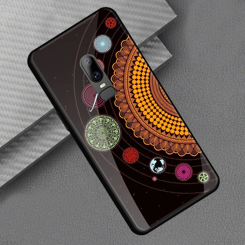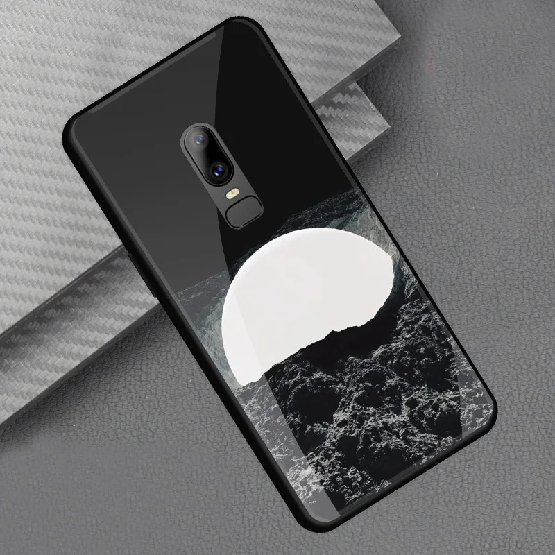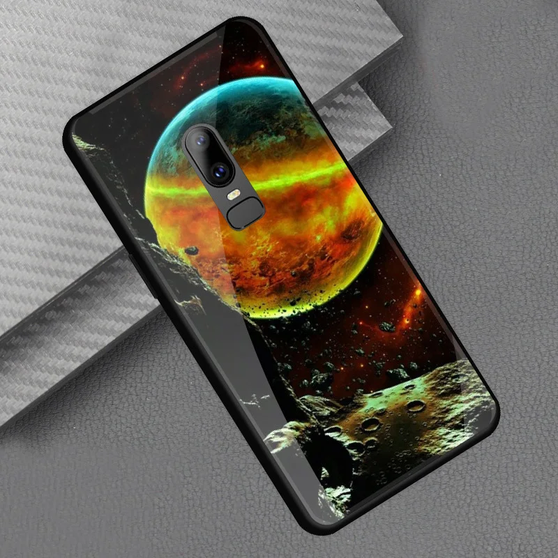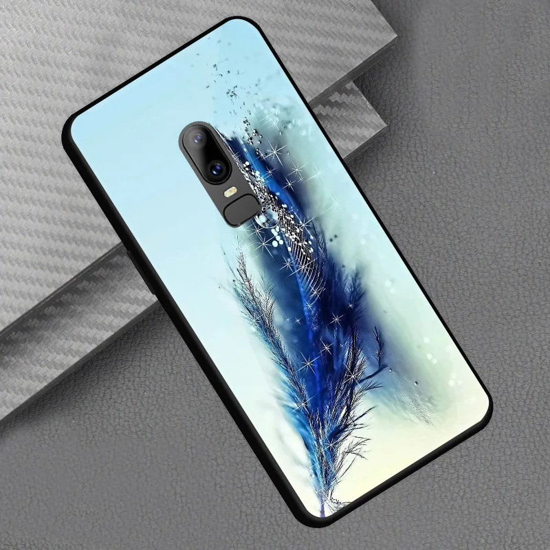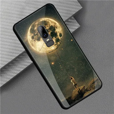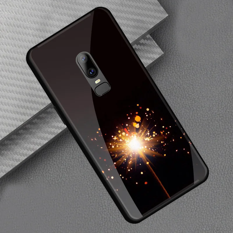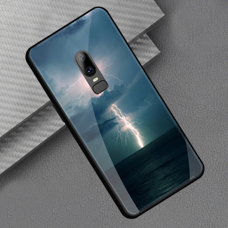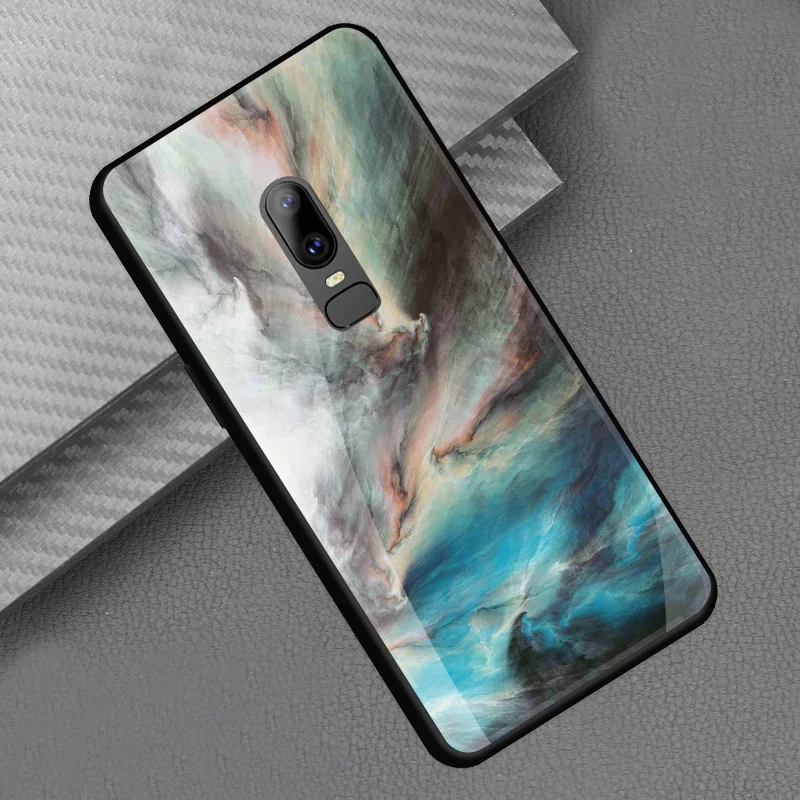 Style::Tempered glass print back cover soft tpu frame bumper for oneplus 6