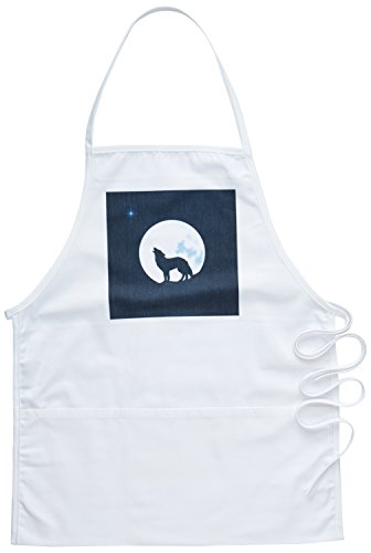 3dRose apr_11655_2 This Artwork Features Lone Wolf in Silhouette Howling Medium Length Apron, 22 by 24-Inch