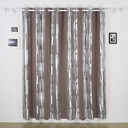 Deconovo Foil Printed Blackout Curtain, brings a comfortable and lively atmosphere in your home. Neutral background color bring fabric an incredible beauty. These curatins are stylish and have a unique design. Made of 100% polyester, they are silky, soft, drapery and very pleasant to touch when compared to the other curtains. All seams are nice and straight, no loose threads. Striped patterns also have no visual defects. Overall, it makes the curtain hang nicely and gives an expensive look. They are durable, the fabric is not at all flimsy, and they are made to last for a long time! They are super easy to hang.