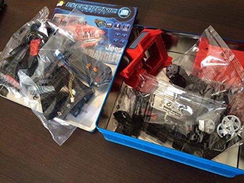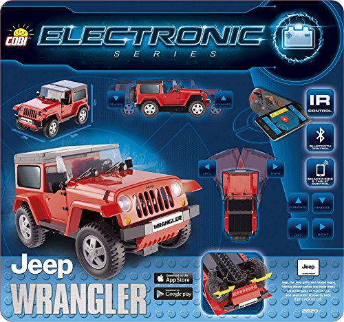 Studio : Cobi Toys, LLC Publisher : Cobi Toys, LLC Binding : Toy Product Description Jeep Wrangler is an electronic, ultra-modern, remotely operated vehicle for self-build with COBI blocks! The model is inspired by a well-known American brand, Jeep Wrangler. The set consists of 200 blocks and a packaging with electronics. Thanks to a built-in Bluetooth and infrared, you can control the Jeep freely, not only by a remote control, but also by a Smartphone or even a tablet. Jeep Wrangler moves forward and reverse, with three possible levels of speed, which allow its smooth regulation. In addition, the vehicle has swiveling front wheels and openable door. Jeep Wrangler is a toy, in which the traditional remote can be replaced with mobile devices with Bluetooth technology such as a Smartphone or tablet, after downloading a free app. The vehicle can be controlled by tilting the device respectively. With Bluetooth, the control range reaches even up to several meters. The original and advanced Jeep Wrangler model, controlled by a Smartphone, will let children and adult motoring enthusiasts rediscover the full joy of fun. There is no doubt that Jeep Wrangler can provide you with many hours of incredible and exciting entertainment, during which you will check all of its fantastic functions. Model is available in a high-energy red color!. 0
