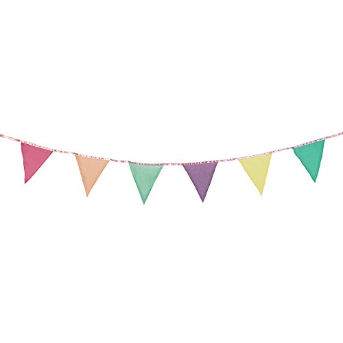 Studio : Talking Tables Publisher : Talking Tables Binding : Kitchen Product Description Add a splash of bright pastel color to your room with our Malibu Fabric Bunting. This neat bunting is an ideal decoration for a garden party in the sun, or for simply decorating your home. The bunting is 3 meters long and has 12 pennants in 6 stunning colors. Drape anywhere in your space for a fresh clean look. This bunting looks fantastic with our Sorbet Paper Fans or our Pastel Pom Poms!. 0