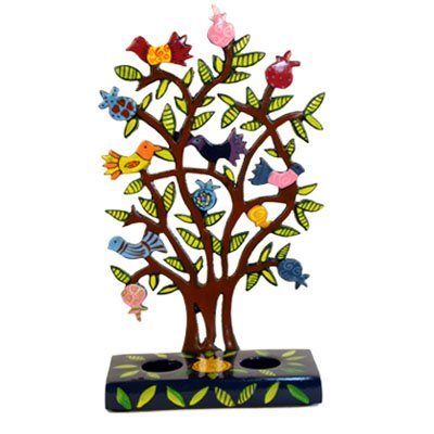 Painted Metal Lazer Cut Shabbat Candlesticks - Pomegranate Tree