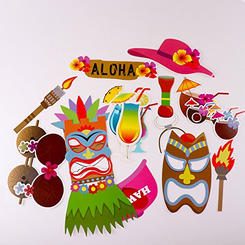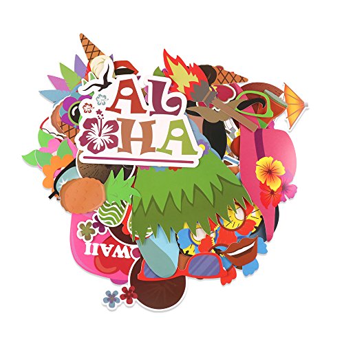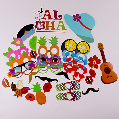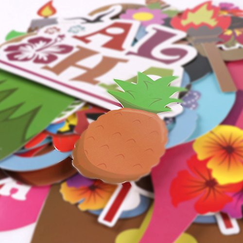 KEIYO Hawaii Party Series Photo Booth Props - Pack of 60 PCS - DIY Card Stock with Hardwood Stick Photo Props for Party Fun Favor