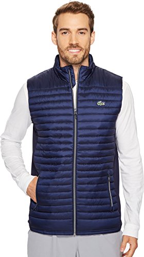 Product DescriptionWater-resistant fabric keeps you dry as stretch panels allow you a full range of movements. A Lacoste sport golf quilted vest for aficionado.0