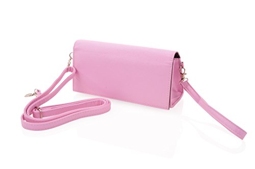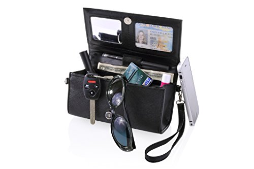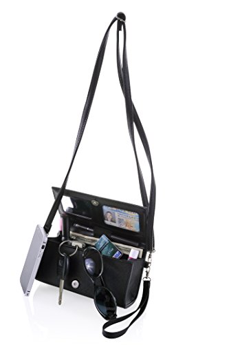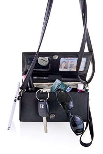 [Description] A glasses case_ wallet_ phone case_ and purse all in one! Includes a large zipper pocket for keys_ bills_ coins... The only product of its kind on the market which keeps a woman``s most basic ``can``t leave home without it`` essentials: glasses_ make up_ keys_ cash_ cards_ etc! Hard body shell protects glasses from impact. Unique combo of hard shell glasses case_ fashionable clutch_ RFID reader blocking wallet_ and phone case. Use wristlet or crossbody strap to carry everything in a compact bag_ or put it in a larger purse.
