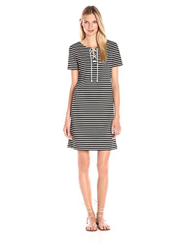 Product DescriptionStriped ponte dress with short sleeveless and tie up front0