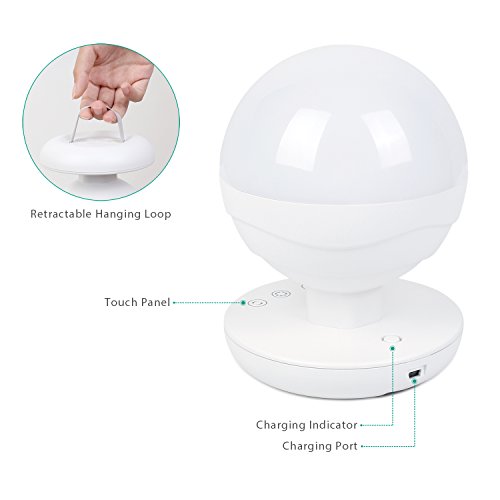 AUKEY Rechargeable Table Lamp, Dimmable RGB Color LED Bedside Lamp with Touch Panel and Retractable Hanging Loop