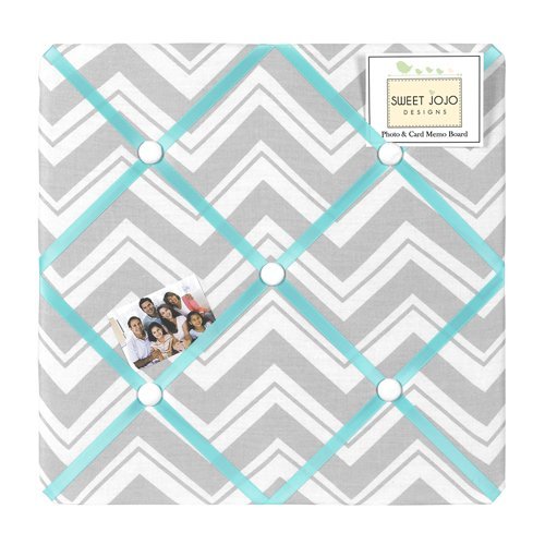-. Title : Sweet Jojo Designs Turquoise and Gray Chevron Zig Zag Fabric Memory/Memo Photo Bulletin Board