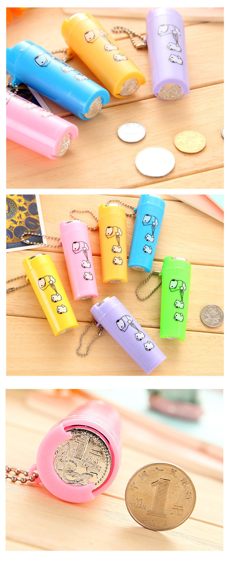 Cartoon coin storage cylinder. 5 hair can be loaded and one dollar coin, portable, easy to use Oh ~ there keys hanging on a key very practical Oh!
