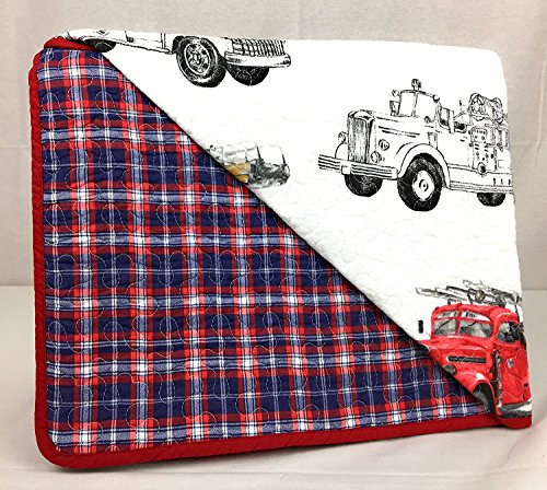 -. Brand : Red Truck Clothing Co. -. Color : Red White Black N Avy -. EAN : 0757764201470 -. Feature : Reverses to Red Navy White Plaid / The Classic Kid's Collection made using only the finest materials available / TWIN set includes 1 fully reversible quilt and 1 STANDARD matching pillow sham / Red Truck Clothing Co. Since 1954 -. ProductGroup : Home -. ProductTypeName : HOME_BED_AND_BATH -. Size : Twin -. Title : Red Truck Clothing Co. Cotton Reversible TWIN Quilt Set Firetruck Red White Black Navy -. UPC : 757764201470