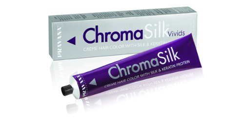 ChromaSilk VIVIDS are the most vibrant, long-lasting colors available anywhere. These Semi-permanent colors and are applied directly to clean, dry, pre-lightened hair and is not mixed with any developer. Ten pulsating shades including: Silver, Yellow, Orange, Red, Purple, Pink, Magenta, Violet, Green, Blue and Wild OrchidFeature