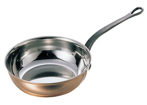 -. Feature : No re-tinning required / Stainless steel interior / Cast iron handle / Straight overturn non-drip edge / Smooth copper exterior