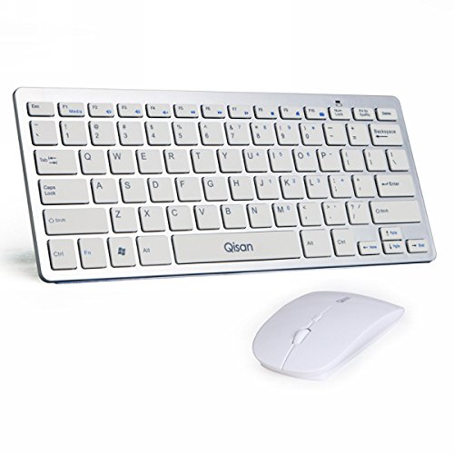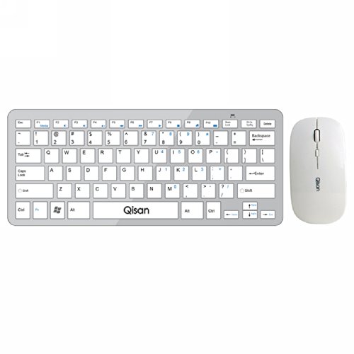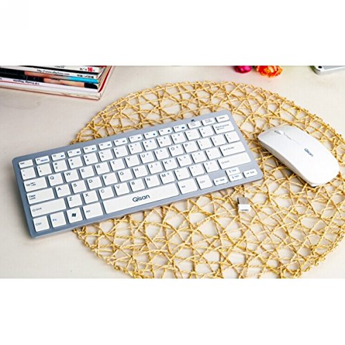 Qisan Wireless Keyboard and Mouse Combo Ultra Slim 2.4G Wireless Mouse 78-Key Keyboard D1000 - White