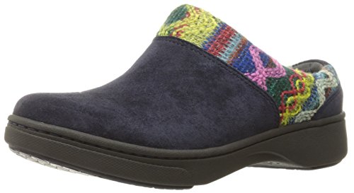 Product DescriptionFresh and fun! this backless slip-on shoe is highlighted by a contrast-colored sole and a knit-inspired border across its suede upper0