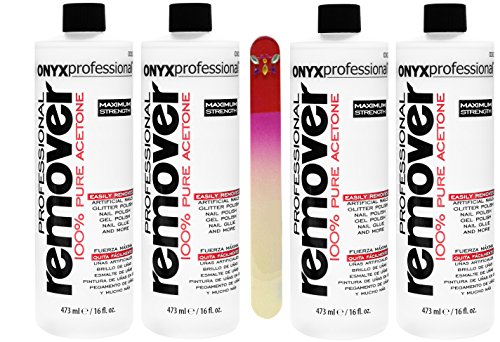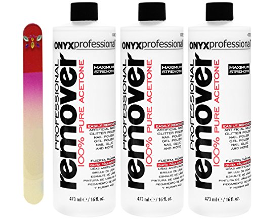 Onyx Professional 100% pure acetone removes artificial nails, nail polish, gel polish and more. Also ideal for hard to remove nail glue and glitter polish. It is maximum strength and exactly what the salons use.