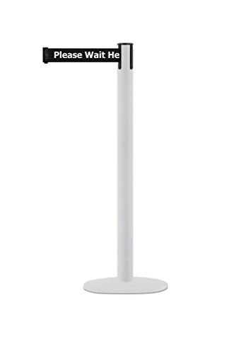 Tensabarrier MARINEPOST-32-MAX-NO-BCX-C Marine Post, 13' length Black Please Wait Here belt, 38" Height, 2" wide, 156" Length, White