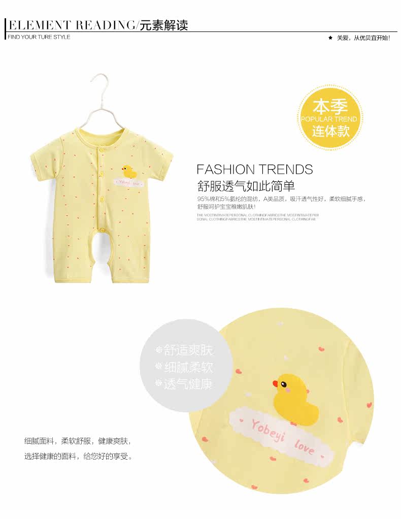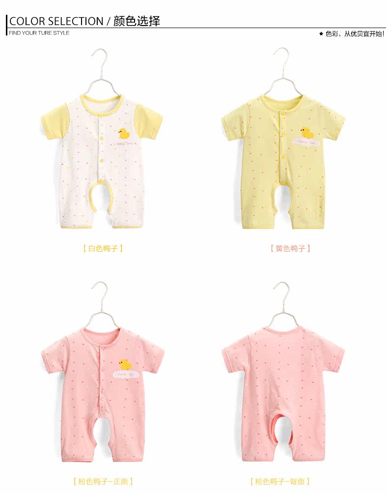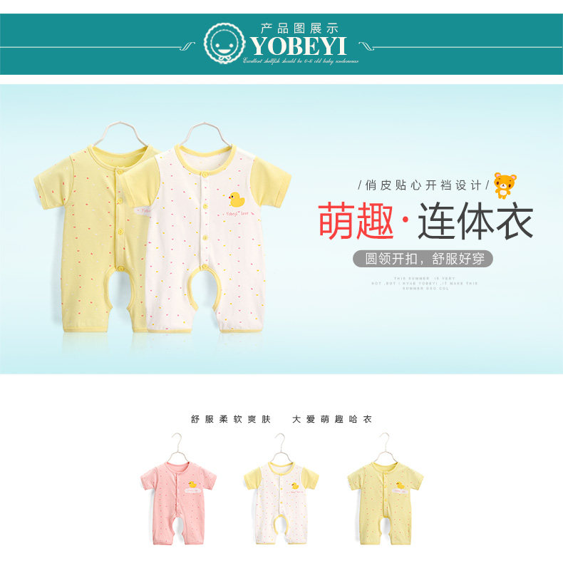 婴儿夏季睡衣连体衣短袖满月宝宝哈衣新生儿衣服爬服薄款