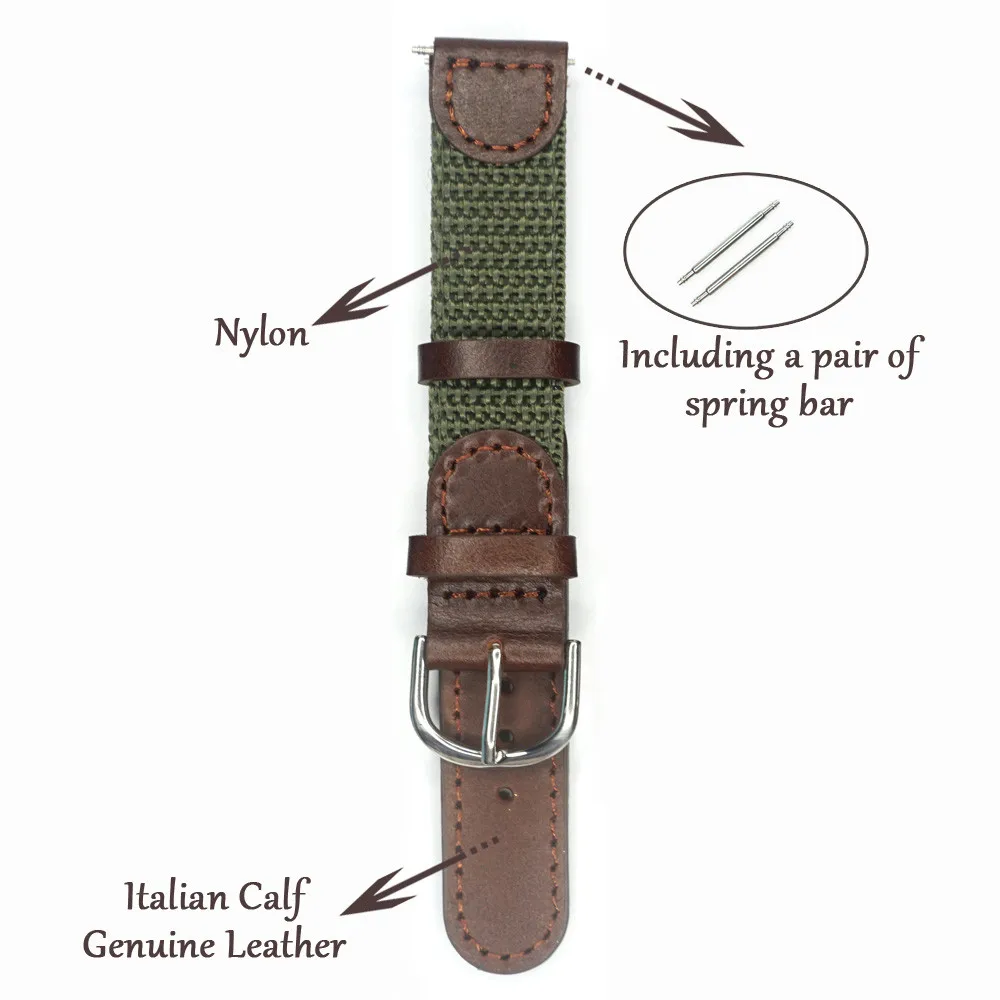 오일 정품 이탈리아어 가죽 나일론 손목 시계 손목 시계 시계 끈 16mm 18mm 20mm stianless 스틸 버클 시계 여성 녹색