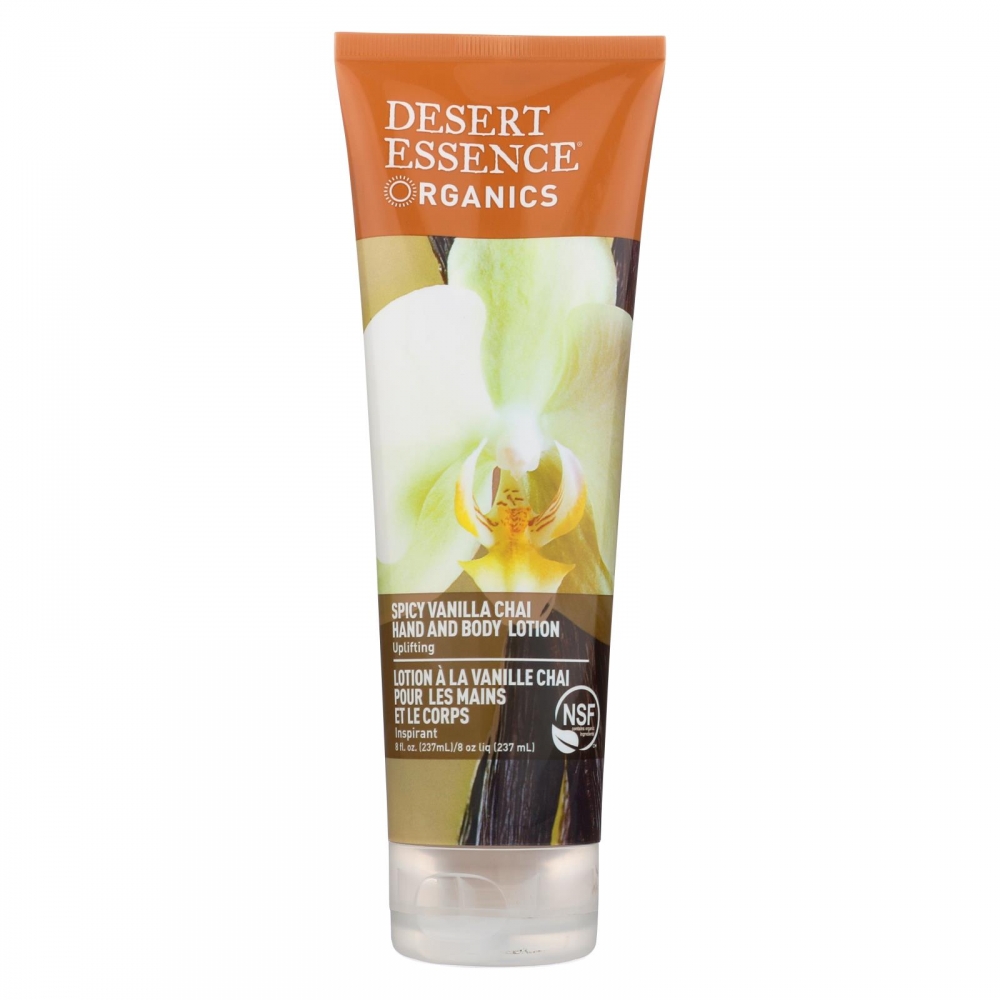 | Desert Essence Hand and Body Lotion Organics Vanilla Chai Description: Uplifting Repairs Skin Damage from Environmental Stressors Smoothes and Softens Skin Leaves Skin Silky and Well Hydrated without a Greasy Residue Desert Essence Organics Spicy Vanilla Chai Hand and Body Lotion contains organic Shea Butter and organic Jojoba Oil to deeply hydrate, leaving skin soft and smooth. Organic Black Tea and organic Vanilla Extract are packed with antioxidants to protect skin. Free Of Wheat, gluten, parabens, sodium lauryl/laureth sulfates, phthalates, artificial fragrances or colors, silicones, EDTA, glycol or petroleum based ingredients.Cruelty Free and Biodegradable: No animal testing of Disclaimer These statements have not been evaluated by the FDA. These products are not intended to diagnose, treat, cure, or prevent any disease. Ingredients : Aqueous Infusion of Certified Organic Extracts: Camellia Sinensis (Black Tea) Leaf 1, Camellia Sinensis (Green Tea) Leaf 1, Vanilla Planifolia (Vanilla) 3, Eugenia Caryophylus (Clove Flower)Extract 1, Certified Organic Helianthus Annuus (Sunflower) Seed Oil2, Certified Organic Simmondsia Chinensis (Jojoba) Oil2, Glycerin*, Proprietary Blend of Essential Oils, Glyceryl Stearate*, Copernicia Cerifera (Carnauba) Wax*, Emulsifying Wax*, Stearic Acid*, Sodium Hydroxide, Carbomer, Potassium Sorbate, Phenoxyethanol, Potassium Glucamate *Vegetable Derived 1=Certified by QCS 2=Certified by QAI 3=Certified by Oregon Tilth Vegan : Yes Size : 8 FZ Pack of : 1 Product Selling Unit : each |