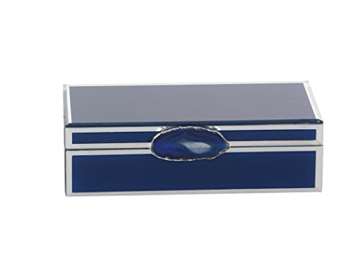 Deco 79 35734 Blue Wood and Glass Agate Jewelry Box, Blue/Silver