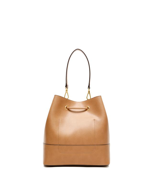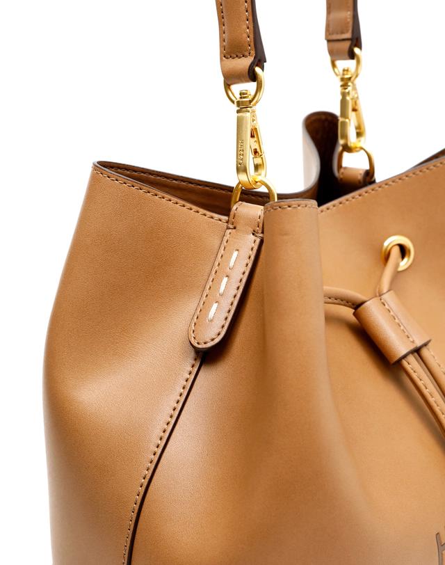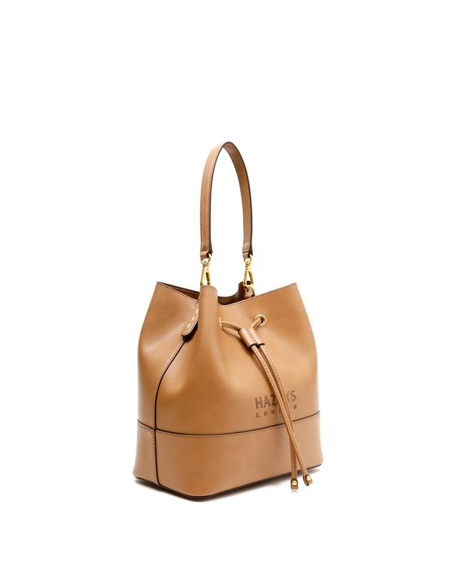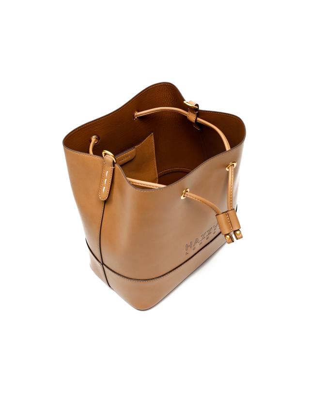 ●HIBA9E526W2_브라운 가죽 로고 드로우스트링백●