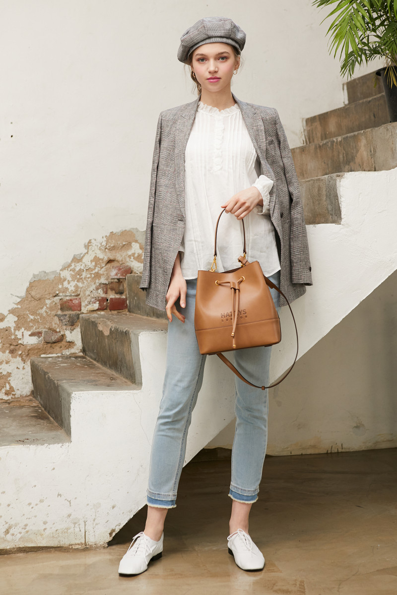베이직한 디자인으로 중앙 HAZZYS LONDON 로고로 포인트를 준 드로우스트링백 입니다.