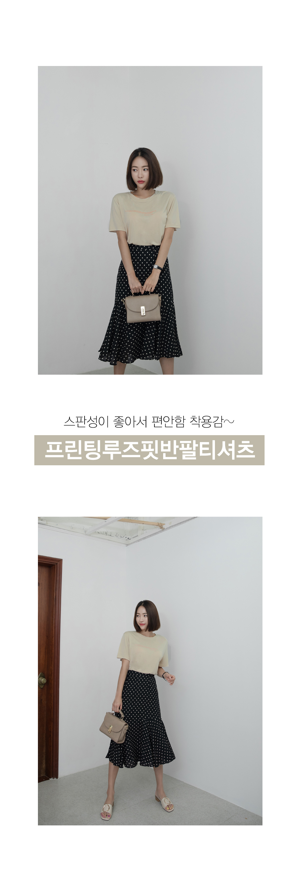 깔끔한 프린팅이 돋보이는 루즈핏 반팔 티셔츠입니다.