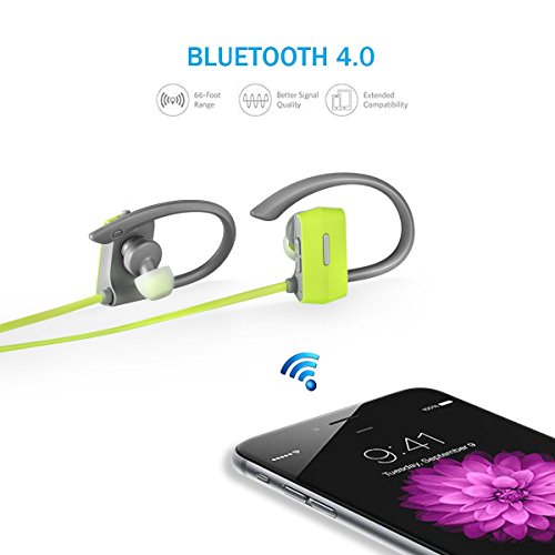 Bluetooth V4.0 Headphones Wireless Earbuds for Sports Workouts & Running, Up to 8 Hours of Music with Premium Sound & Echo Elimination, (Green)