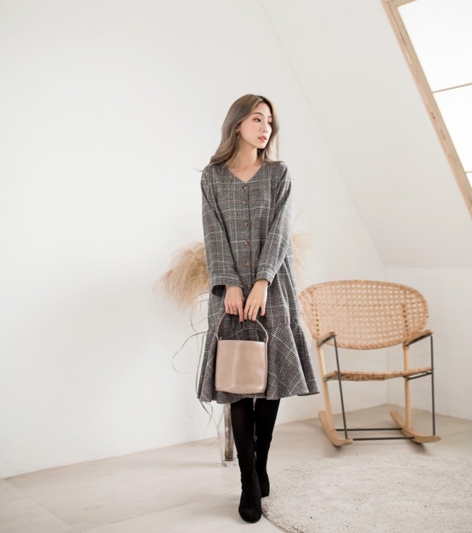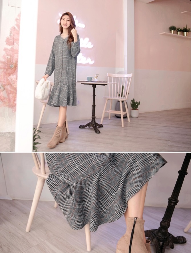 サイズ展開豊富♪グレンチェック柄ワンピースです◎