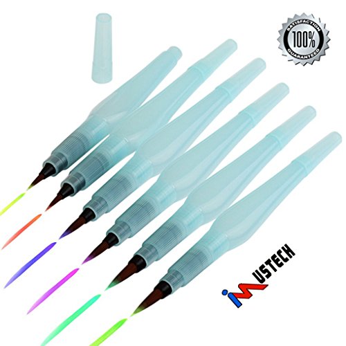 Water Brush Pen, iMustech® Watercolor Brush Pen, Assorted Tips Art Paint Brush Pen, Set of 6 Pieces (2 Bold, 2 Medium, and 2 Fine Tip)