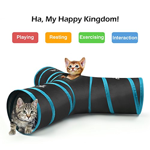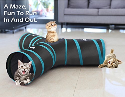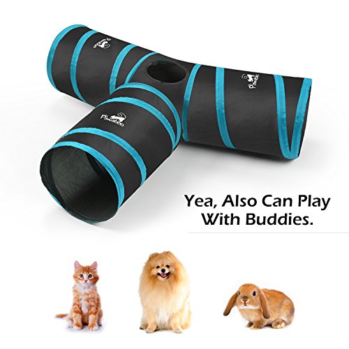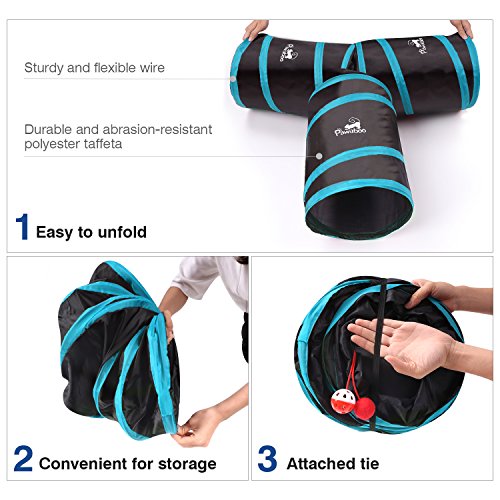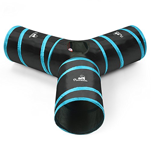 Pawaboo Cat Tunnel, Premium 3 Way Tunnels Extensible Collapsible Cat Play Tunnel Toy Maze Cat House with Pompon and Bells for Cat Puppy Kitten Rabbit.