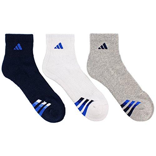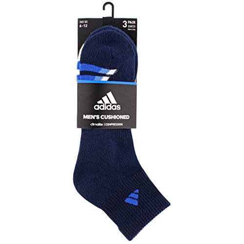 adidas Men's Cushioned 3-Pack Quarter Socks, Collegiate Navy/White/Heather Grey/Blue, Large