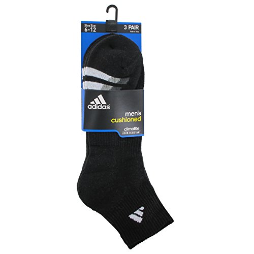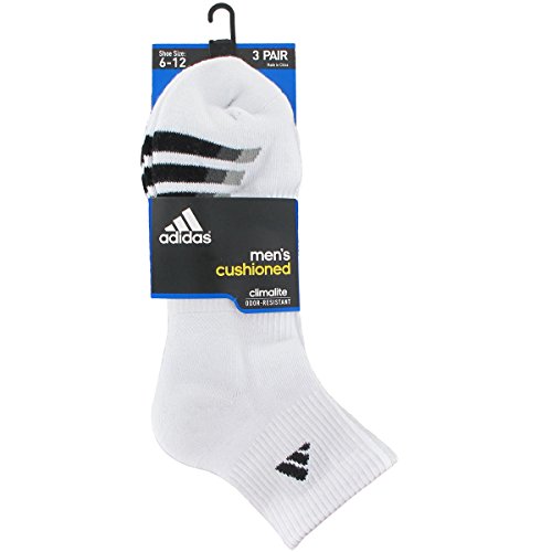 adidas Men's Cushion Quarter Socks (Pack of 3), White/Black/Granite/Light Onix, Large fits shoe size 6-12