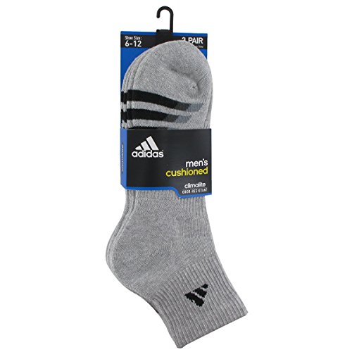 adidas Men's Cushion Quarter Socks (Pack of 3), Heathered Light Onix/Black/Granite/Tech Grey, Large fits shoe size 6-12”